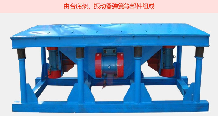 混凝土振動平臺主要由臺底架,振動器彈簧等部件組成,臺面與底架均用鋼板和型鋼焊接而成,振動臺是用電動機加一對相同的偏心論組成。并通過一對吊架聯軸器安裝在臺面中心位置,起著振實過程中平穩,垂直方向的作用。